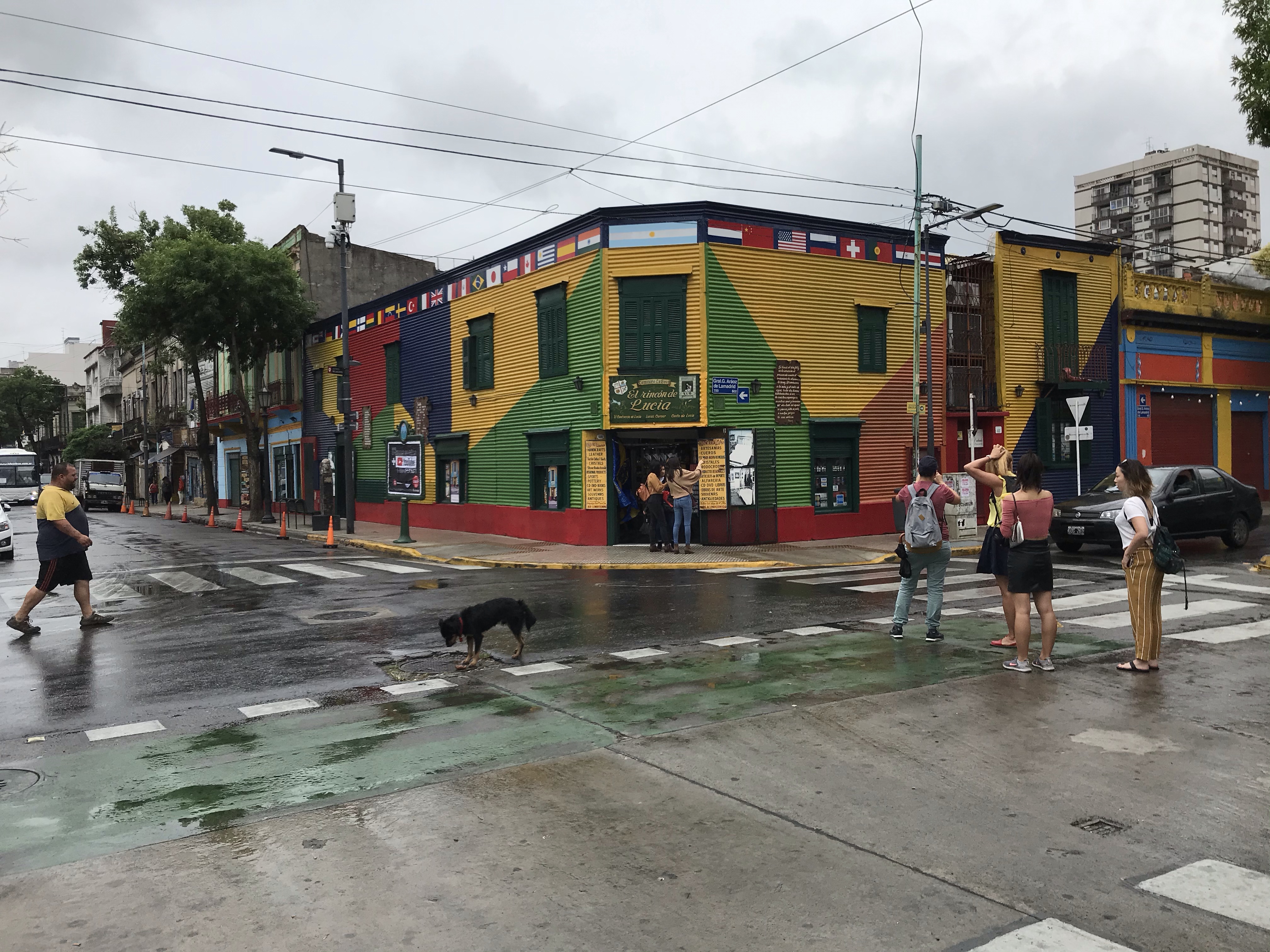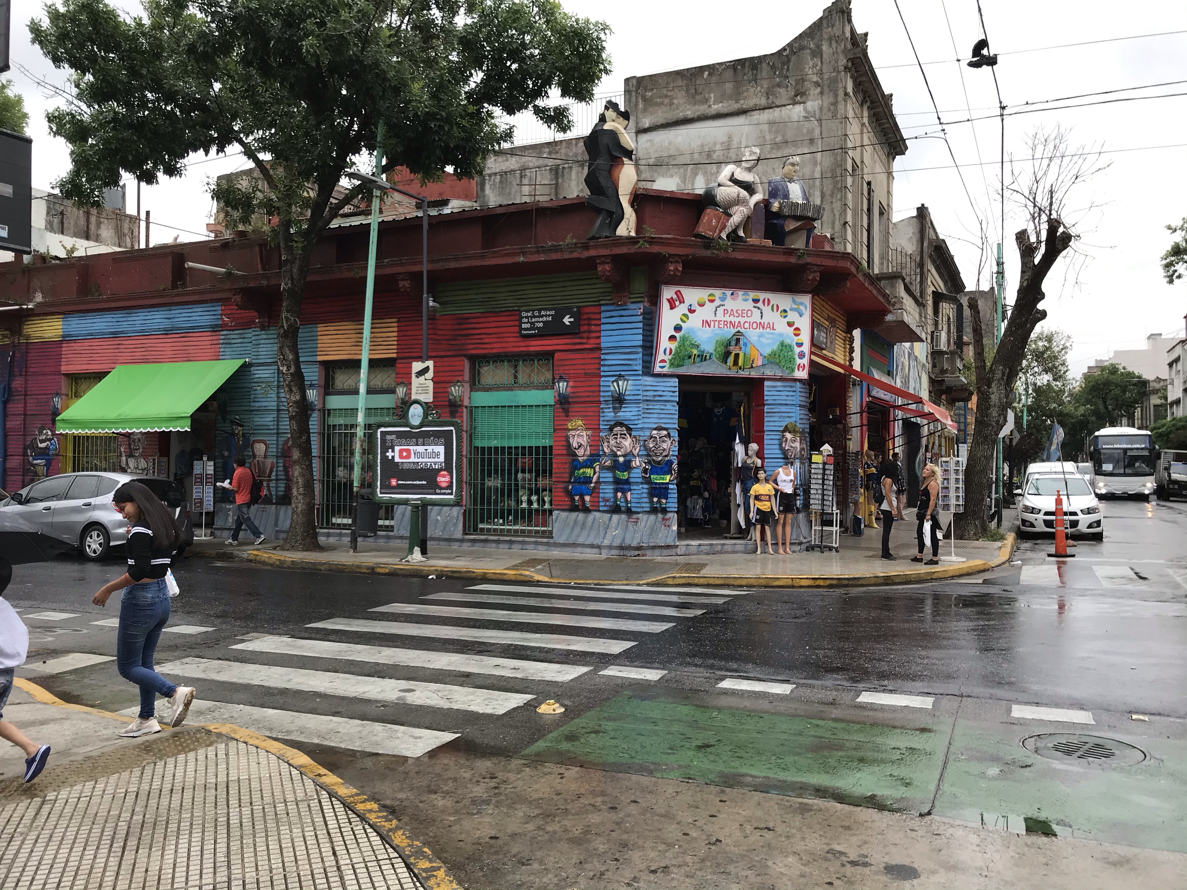 I availed myself of the ladies, (when you find one, use it, is my motto), and this one took me back to my time in China with a big notice, “NO Toilet paper to be flushed. Please use basket. Thankfully they empty their baskets more often than in Beijing in the 1990s where I would come out pretty green at times. So let’s show you more of Caminito as the rain had just about stopped when we emerged.