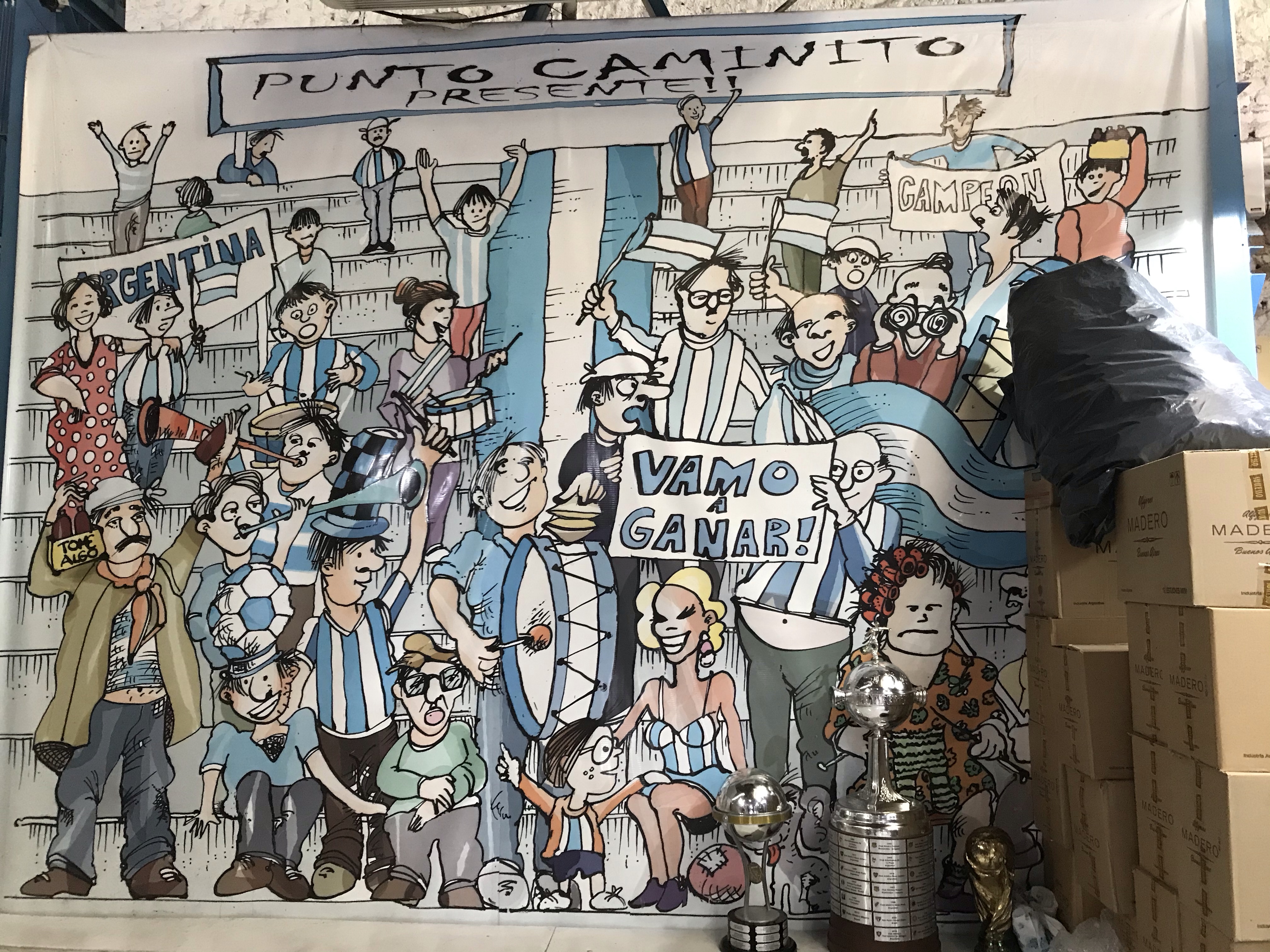 Not sure if I mentioned we are on our way to La Boca? Home to the big BA football, (soccer) stadium, La Bombeonera. Locals love football, coffee and wine! The face you see almost as often as Eva Peron is Maradona!