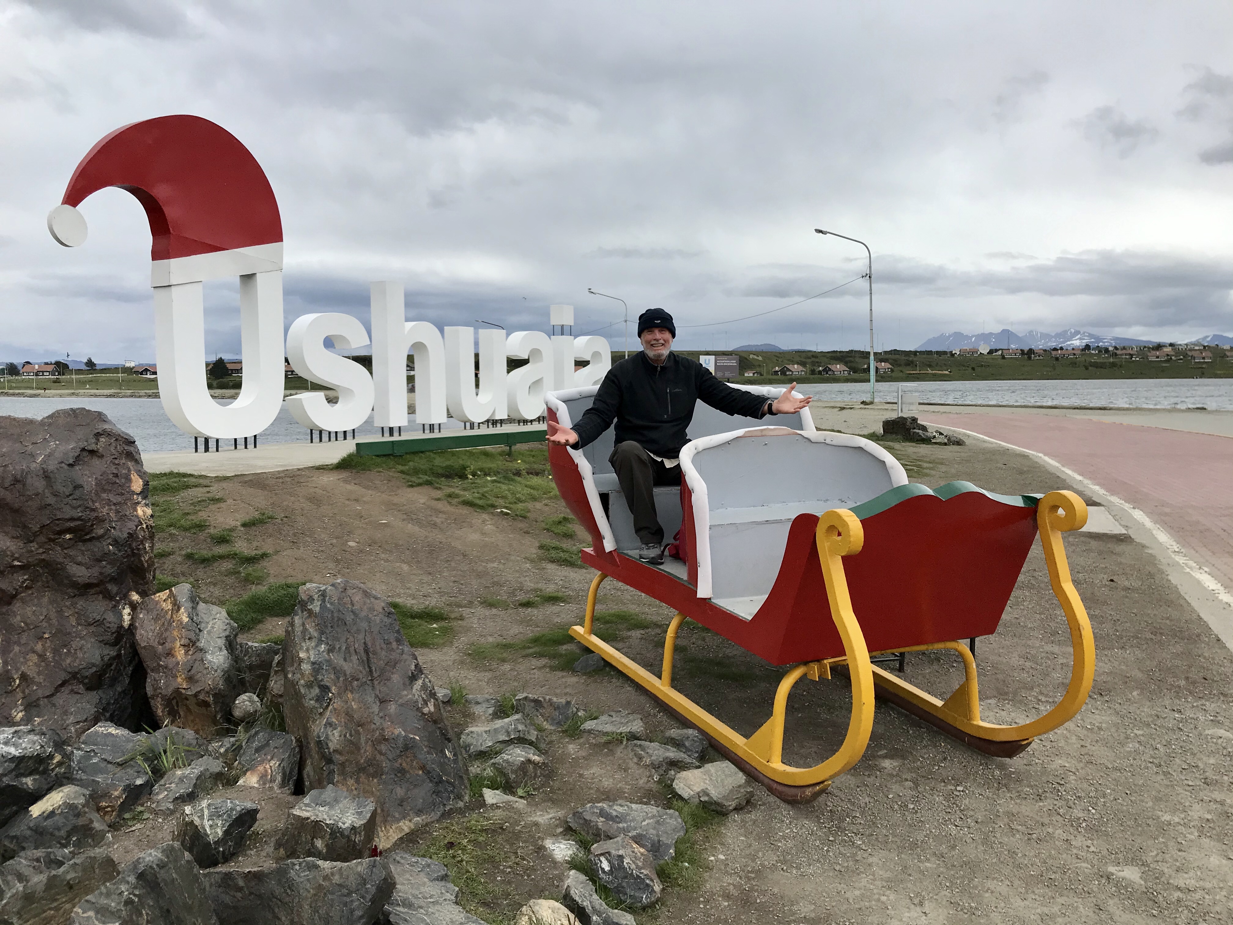We were driven by bus into Ushuaia and given a few hours to explore. Today is the longest day of the year here, about 18 hours. Ushuaia has the same one way streets as Buenos Aires. Many shops were closed due to the siesta until 4pm but we did find a few open and I found my first Christmas decoration.