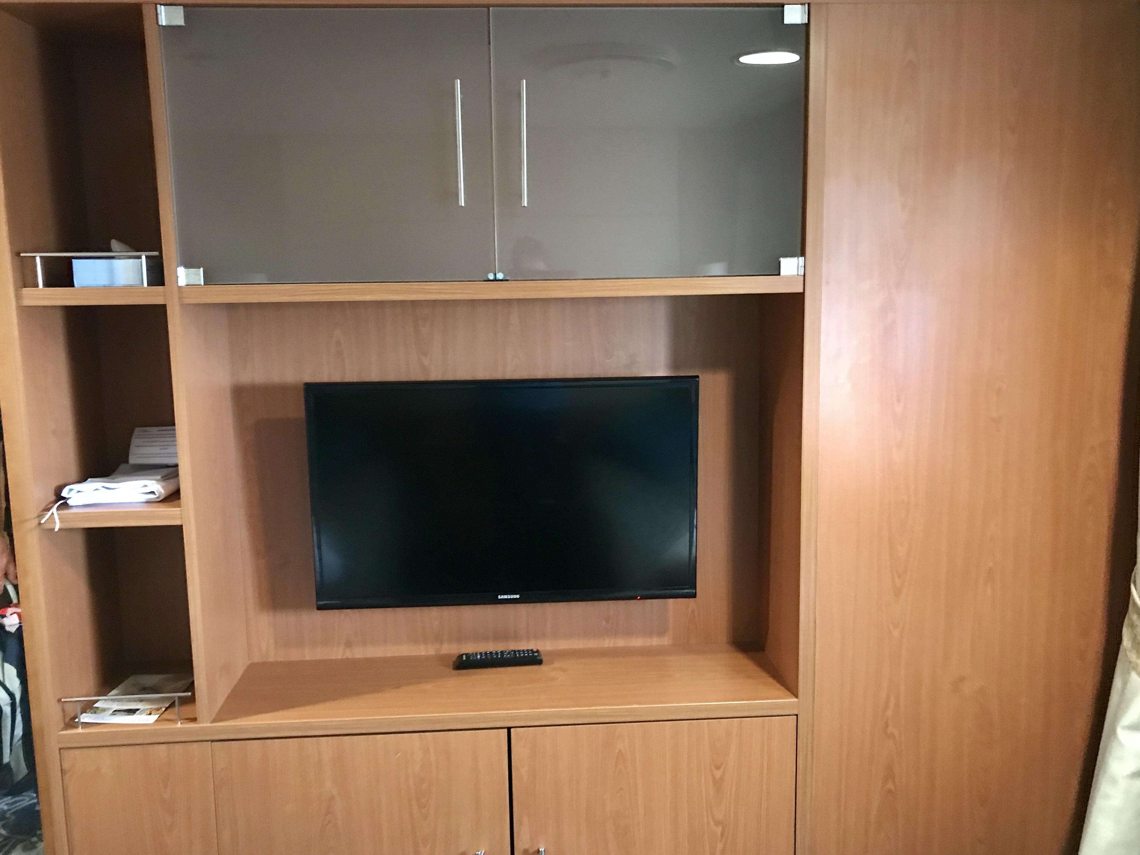 There is loads of space in our cabin. We have two portholes and two TVs and there are three rooms really so a suite.