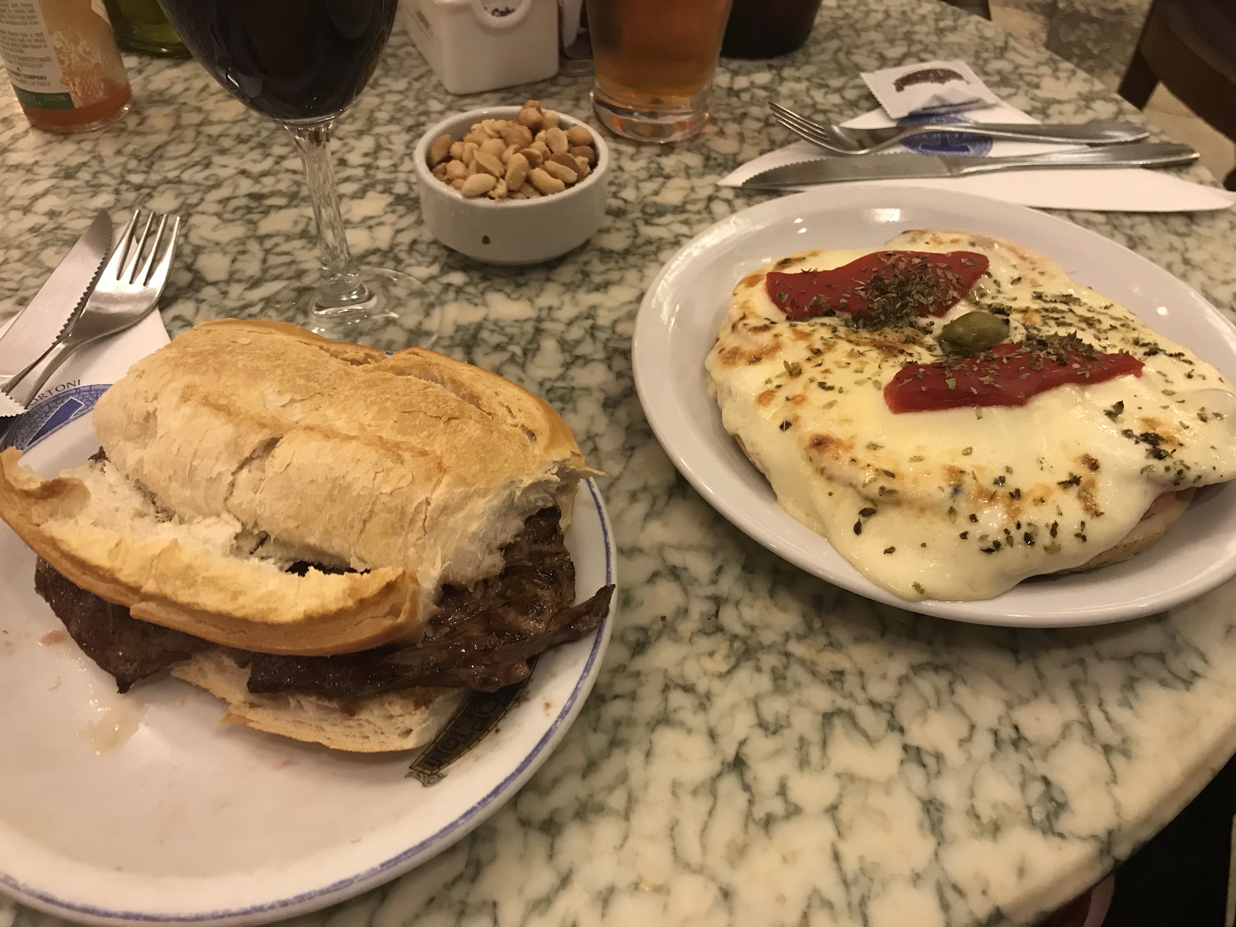 So then a huge salad arrived and he also asked about French fries, ok we say. Then two steaks arrived a skirt steak – a bit tough and a rump which was melt in your mouth. Oh and also a bottle of water that would also be charged and some pizza, on the house… also bread but the olive oil was not a patch on last night. I am looking at all this food and wondering how big the bill would be. There was no way we could eat it all though much was good, but not a patch on last night. Surprisingly it came in at less than last night ( well a fraction more with a tip) so not too bad but we won’t be leaving choices to the waiter again.